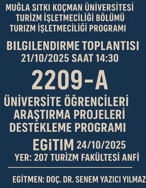 2209-A ÜNİVERSİTE ÖĞRENCİLER ARAŞTIRMA PROJELERİ DESTEKLEME PROGRAMLARI BİLGİLENDİRME VE EĞİTİM TOPLANTILARI Son Güncelleme : 22.10.2025 10:39 Okunma Sayısı : 26
